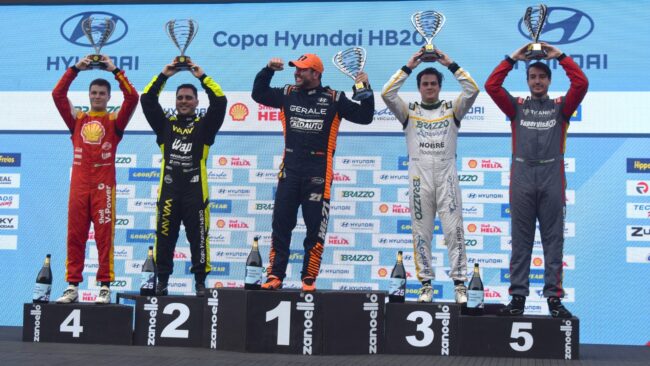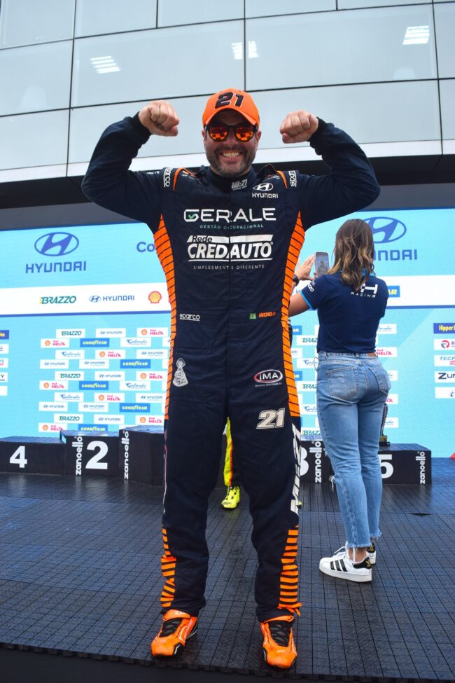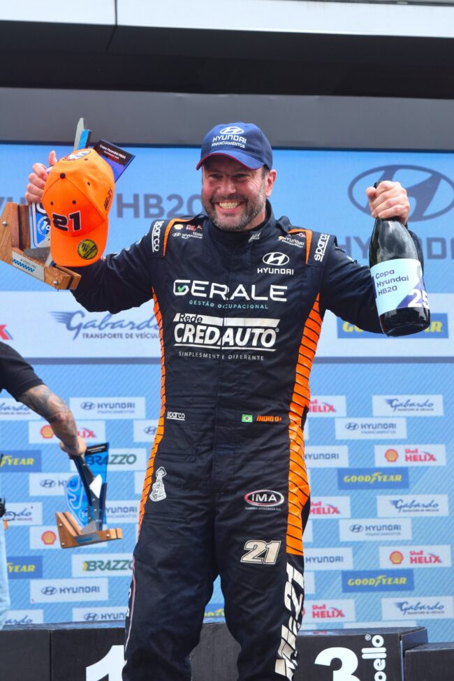 - Domingo (07/12) – A Coroação Bicampeã: Partindo da sexta posição no grid, o piloto da Rede Cred Auto deu uma verdadeira aula de pilotagem e arrojo. Em mais uma de suas largadas espetaculares, avançou cinco posições, assumiu a liderança e comandou a prova de forma soberana até o fim, garantindo não apenas a vitória da etapa, mas o título de bicampeão da Copa Hyundai HB20.